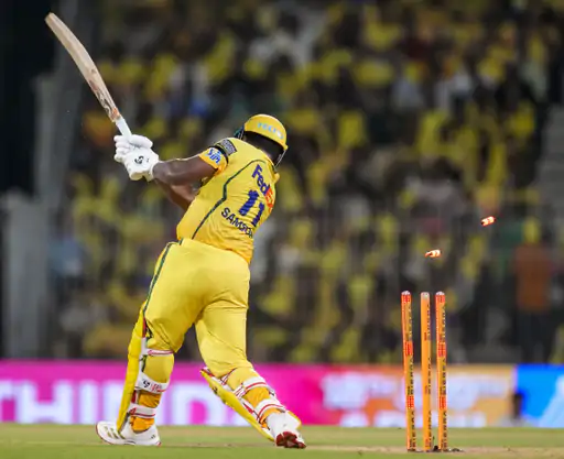 संजू सैमसन ने तेज शुरुआत की, लेकिन उनका बैट छूटा और बाद में कार्तिक त्यागी की गेंद पर बोल्ड हो गए। मैच में अंगकृष रघुवंशी और अजिंक्य रहाणे के आसान कैच छूटे और उन्हें जीवनदान मिला। नूर अहमद ने 3 विकेट लेकर मैच का रुख चेन्नई की ओर मोड़ दिया।